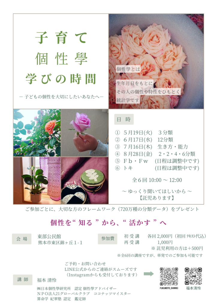 【熊本】個性學講座 スタートします。#1『3分類』ご案内|子どもとの関わり方がやさしくわかる学びの時間