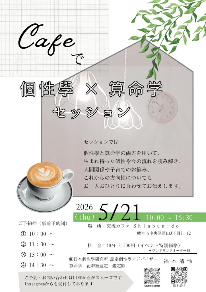 【熊本】個性學×算命学セッション|カフェでゆっくり自分を知る時間